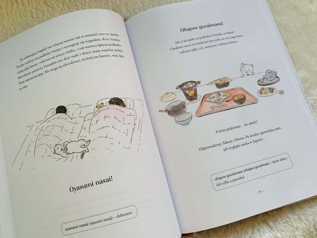 Niesamowita książka z przepięknymi ilustracjami nie tylko dla młodych miłośników Japonii, ale tak naprawdę dla wszystkich dzieci ciekawych świata. Kraj Kwitnącej Wiśni będziemy zwiedzać z miejscowym kotem Kotaru, który przybliży nam kulturę, zwyczaje i codzienność Japończyków, opowie o ciekawostkach związanych z położeniem tego kraju, jego bogatą historią i sztuką kulinarną. Nauczymy się też wielu japońskich słówek!