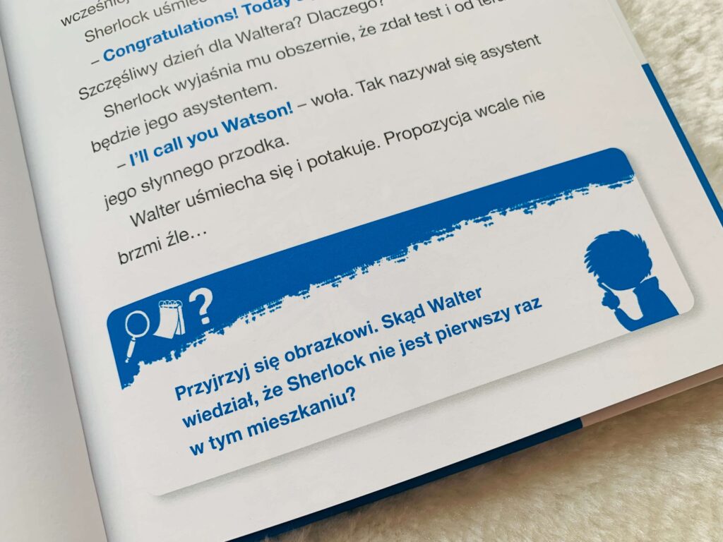 Po każdym rozdziale na młodego czytelnika czeka szybka zagadka, zadanie na logiczne myślenie i spostrzegawczość.