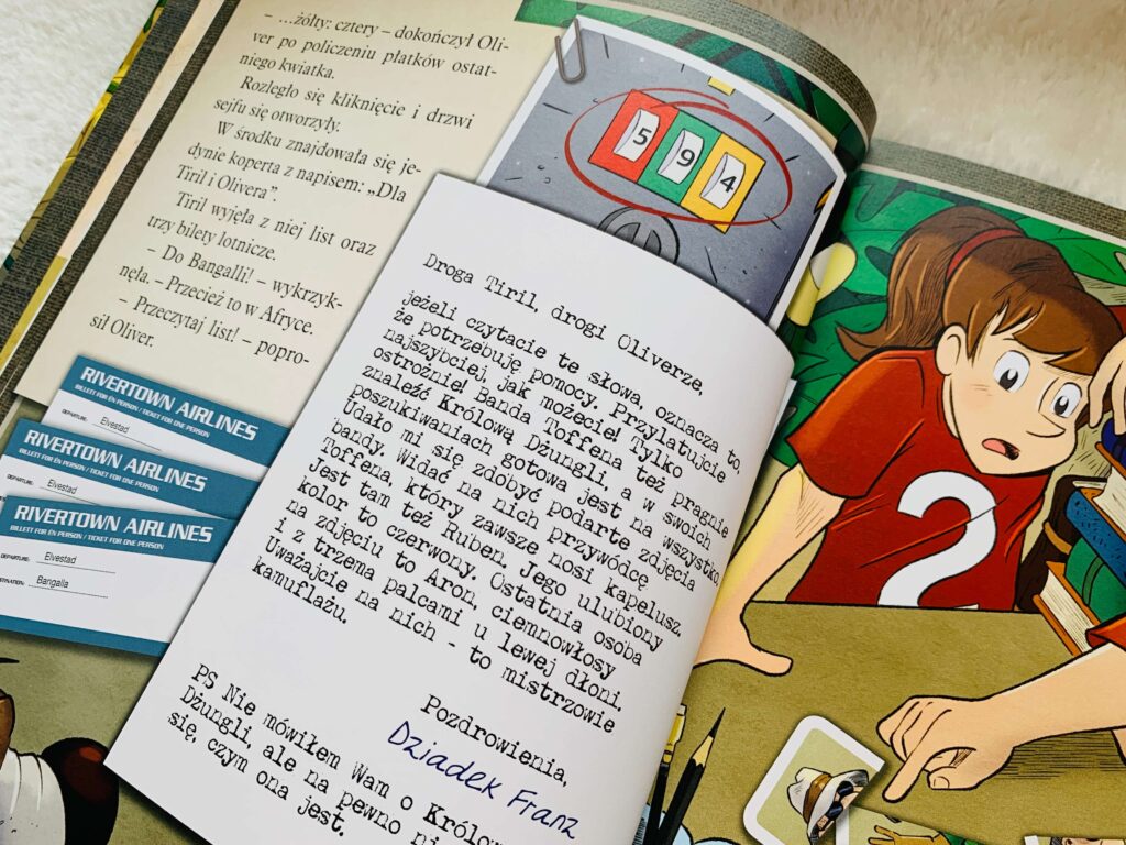 Tiril i Oliwer staną przed rozwiązaniem trudnych zagadek. Będą starali się odnaleźć starą Księgę Czarodzieja, a także wezmą udział w niebezpiecznym pościgu przez dżunglę. W czasie tych przygód będą musieli rozwiązać wiele zagadek, złamać szyfry, podążać za wskazówkami, odnajdować ślady, wykazać się logicznym myśleniem i sprytem.