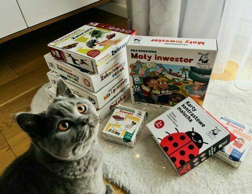 Monopoly kochamy w każdym wydaniu, mamy nawet oryginalne wydanie z lat 80-tych! Choć przyznam, że po nie sięgamy najrzadziej, bo gra zajmuje mnóstwo czasu i staje się monotonna. Zupełnie inaczej jest z wersją Junior Koci domek Gabi! Cała rozgrywka zajmuje mniej niż 30 minut, jest wesoła i dynamiczna. Tak jak w klasycznym Monopoly, gracze poruszają się po planszy i kupują pola (w tej wersji takie jak: Łakotek, Miękicia, Kiciuś Panduś, czy Gabi, stawiając na nich swoje zetony. Pozostali gracze muszą zapłacić za postój na zajętym polu. Grę urozmaicają Kicikarty niespodzianki :)