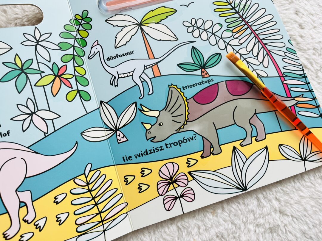 Świetne książki do kolorowania wodą z serii Akademia Mądrego Dziecka. Wraz z książką otrzymujemy bardzo dobry pędzelek – wystarczy trochę czystej wody i można zaczynać zabawę! Do wyboru są trzy tematy – Jednorożce, Dinozaury i Przyroda. Dziecko zamalowuje wodą białe elementy, wydobywając intensywne kolory, a po kilku minutach może powtórzyć zabawę :) Dodatkowo na każdej stronie znajdują się proste zadania do wykonania na spostrzegawczość i liczenie.