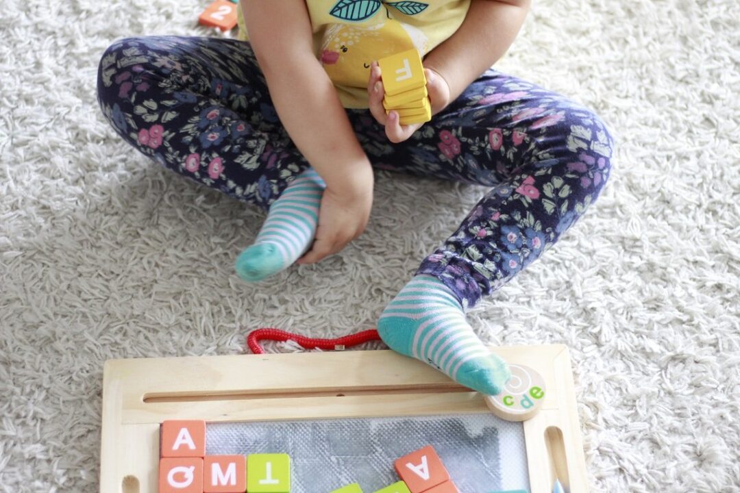 Widzę, jaka frajdę sprawiają Tosi nowe zadania i jak bardzo potrzebuje wyzwań, staram się regularnie wymyślać nowe zabawy, które pomogą jej się rozwijać. Dlatego też bardzo chętnie wzięłam udział w nowym projekcie sklepu internetowego Edukatorek.pl: „Uczę się z Edukatorkiem”. Dziś pokażę Wam, jak w przyjemny i zabawny sposób można zacząć wprowadzać dwulatka w świat literek. Poniżej znajdziecie 7 naszych ulubionych zabaw, do których wykorzystujemy zabawki rewelacyjnej francuskiej firmy Janod – klocki Kubix oraz Magnetyczną tablicę w walizce 4w1.