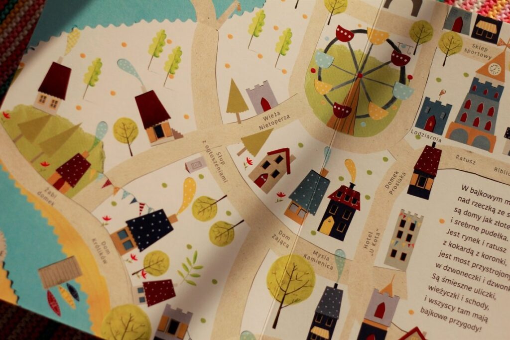 Przepiękna, pomysłowa książka, która skradnie serce każdego przedszkolaka. Gwarantuję, że spędzicie nad nią z dzieckiem wiele godzin! Przygoda rozpoczyna się już na pierwszych stronach, na których przedstawiony jest plan tego bajkowego miasteczka, zamieszkanego przez różnorodne zwierzątka. Na kolejnych kartach poznajemy mieszkańców i zostajemy wciągnięci w wir ich niesamowitych przygód. Rymowane opowieści wpadają w ucho i świetnie się je czyta, a barwne ilustracje zachęcają do wyszukiwania detali i zadawania pytań przez dzieci.