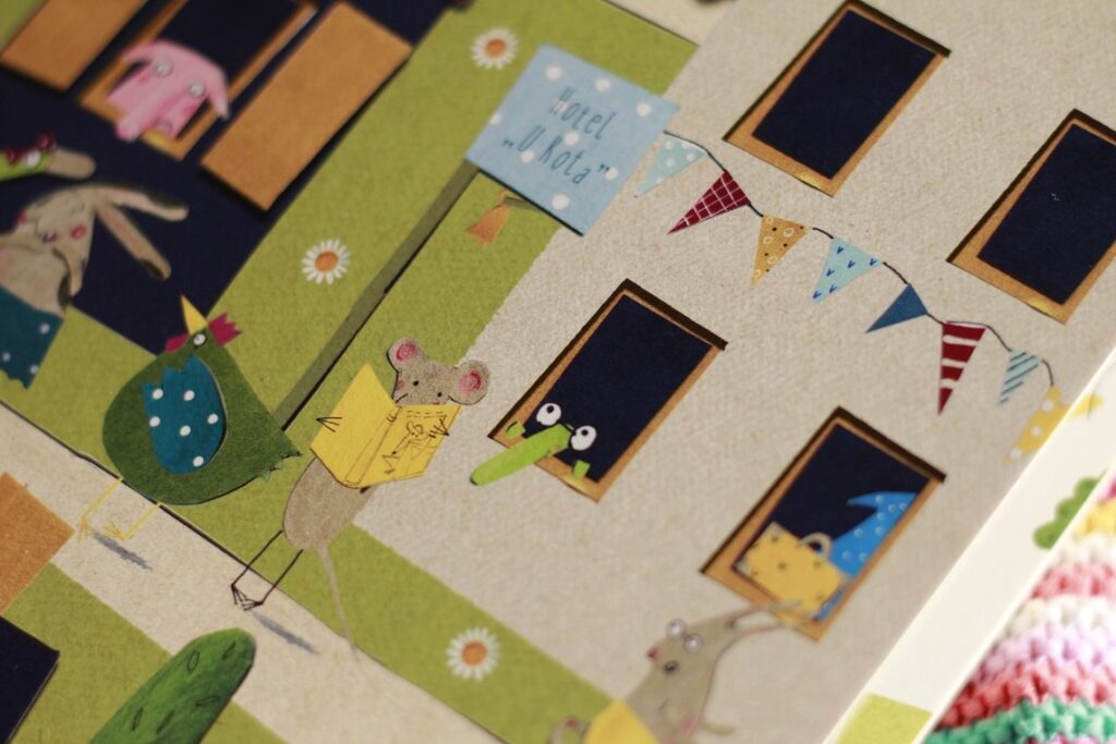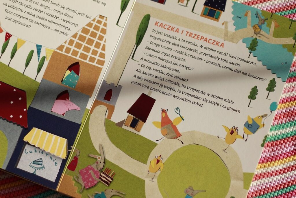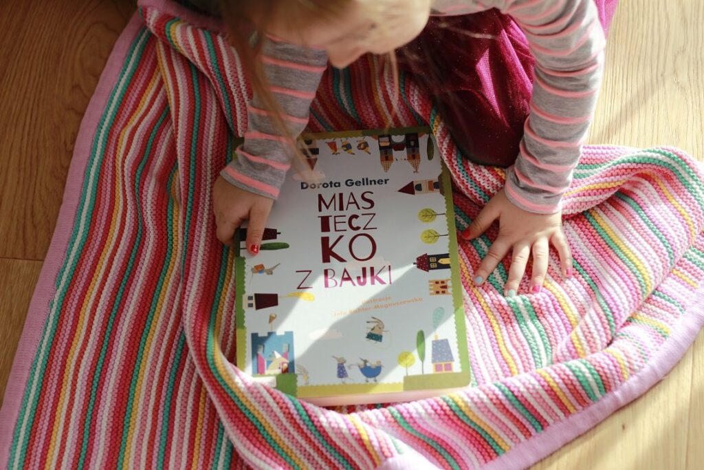 „Miasteczko z bajki” to jedna z książek, którą mamy stale na wyciągnięcie ręki, bo bardzo podoba się Tosi, a rymowany tekst przyciąga uwagę również 2-miesięcznej Helenki. Pewnie niedługo przyciągnie i jej rączki, tym bardziej się cieszę, że książka ma solidne, kartonowe strony.