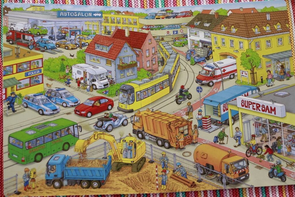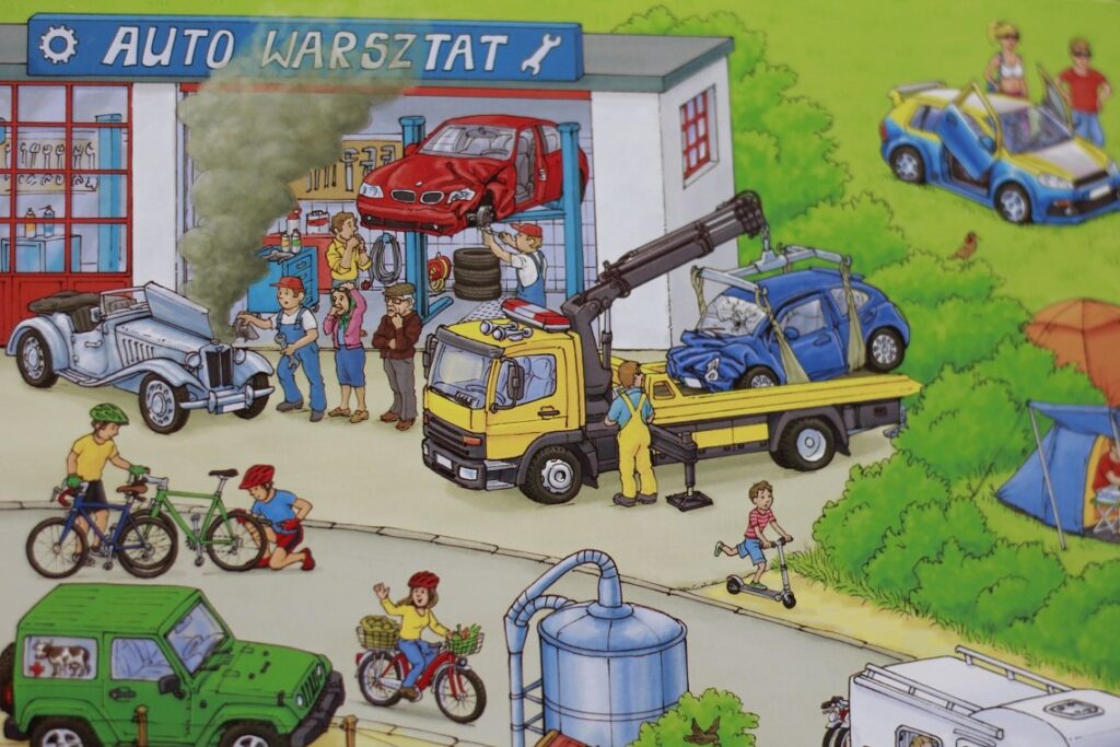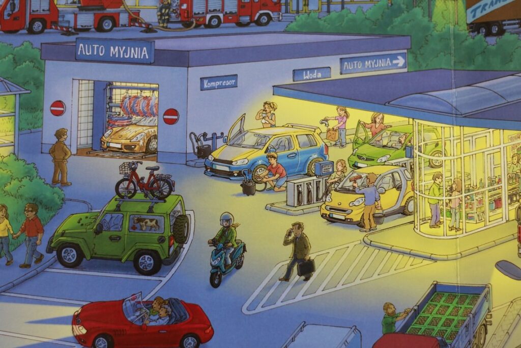 Słyszałam o dzieciach, które tego typu książki przeglądają samodzielnie, spędzając nad nimi w skupieniu długie minuty. U nas tak to nie działa (może będzie w przyszłości?). Książki obserwacyjne, obrazkowe, oglądamy zawsze razem i wymagają one od nas, rodziców, sporo inwencji – śledzimy przygody bohaterów od pierwszej strony do ostatniej, rozmawiamy o konkretnych sytuacjach (jak na przykład wypadek samochodowy czy pożar), wymyślamy imiona bohaterów, zachęcamy do wyszukiwania różnych detali, odpowiadania na pytania, wymyślania własnych historii i odkrywania ciągów przyczynowo-skutkowych. To świetna zabawa dla całej rodziny, która bawi i uczy, ale także zbliża i pomaga poznać lepiej własne dziecko.