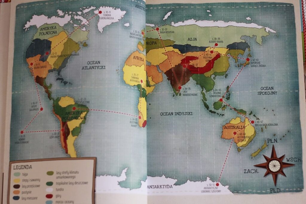 Książka ma wyjątkowo duży format i jest przepięknie wydana. Bardzo podobają mi się pełne szczegółów, realistyczne grafiki i cały układ książki.