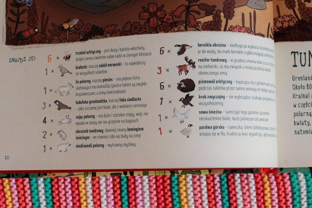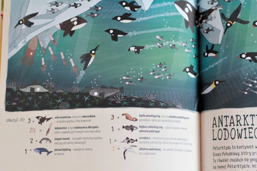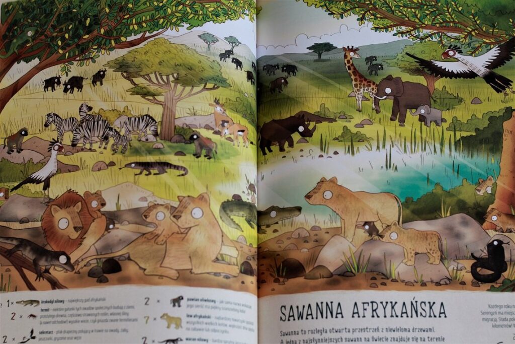 Dziecko przy okazji poznaje masę ciekawostek na temat różnych środowisk naturalnych naszej planety oraz poszczególnych gatunków. Dzięki podanym konkretnym ilościom zwierząt do wyszukiwania zabawa z książką jest jeszcze bardziej atrakcyjna – dziecko ćwiczy nie tylko spostrzegawczość i cierpliwość, ale również doskonali umiejętność liczenia. Możemy też wprowadzić element rywalizacji i wyszukiwać zwierzęta wspólnie.
