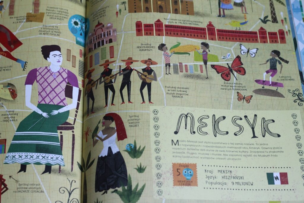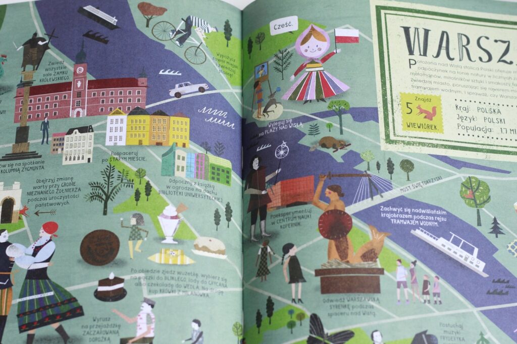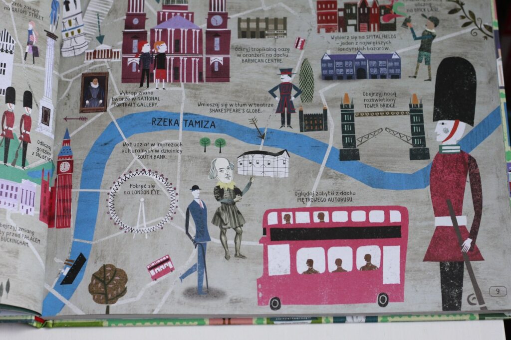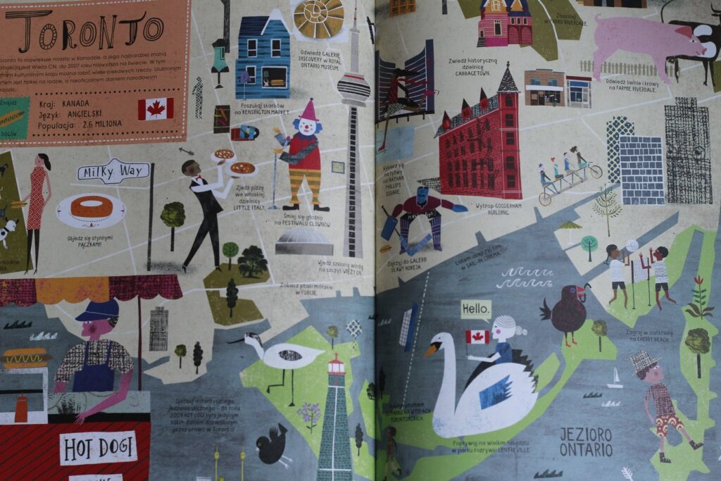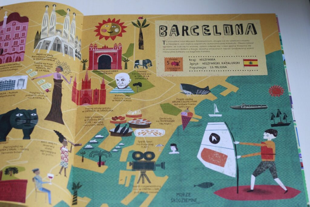 Bardzo podoba mi się to, że Atlas Miast nie jest przeładowany tekstem, autor nie serwuje encyklopedycznego opisu zabytków, bynajmniej! Każde miasto jest opatrzone zaledwie kilkoma zdaniami wstępu, aby czytelnik mógł czym prędzej ruszyć w wielką przygodę paluszkiem po mapie i odkrywać najciekawsze atrakcje. Książka niesamowicie absorbuje, rozbudza wyobraźnię i chęć podróżowania. Dzięki hasłowemu przedstawieniu wszystkich ciekawostek Atlas Miast prowokuje do zadawania pytań i poszukiwania odpowiedzi w innych miejscach, a najchętniej na żywo :)