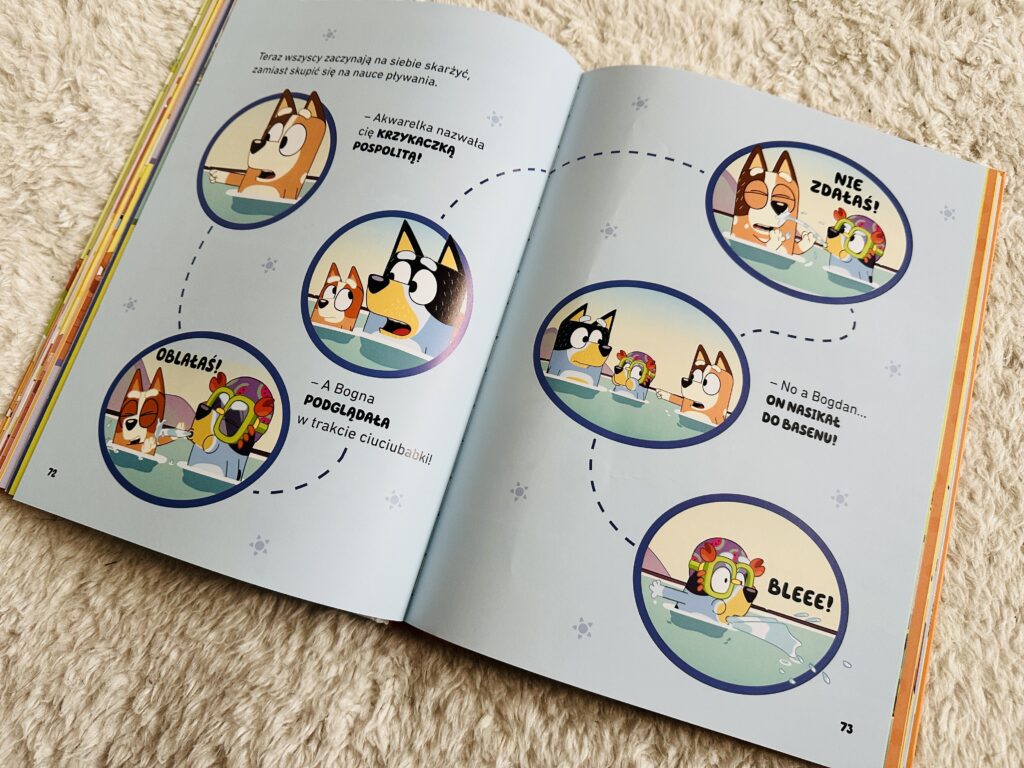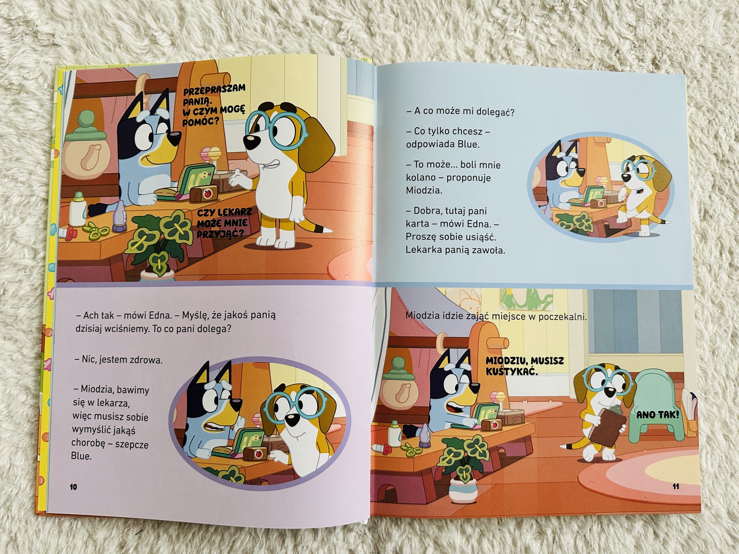 Jeśli macie w domu fanów i fanki Bluey, na pewno ucieszycie się na wieść, że na rynku pojawiła się seria książeczek o przygodach bohaterów telewizyjnej bajki i stale się rozrasta. Znajdziemy w nich najciekawsze historie znane z odcinków bajki, w których rodzice bawią się wesoło z córeczkami – Blue i Bingo, ucząc ich przy okazji wiele ważnych rzeczy o relacjach, miłości i przyjaźni.