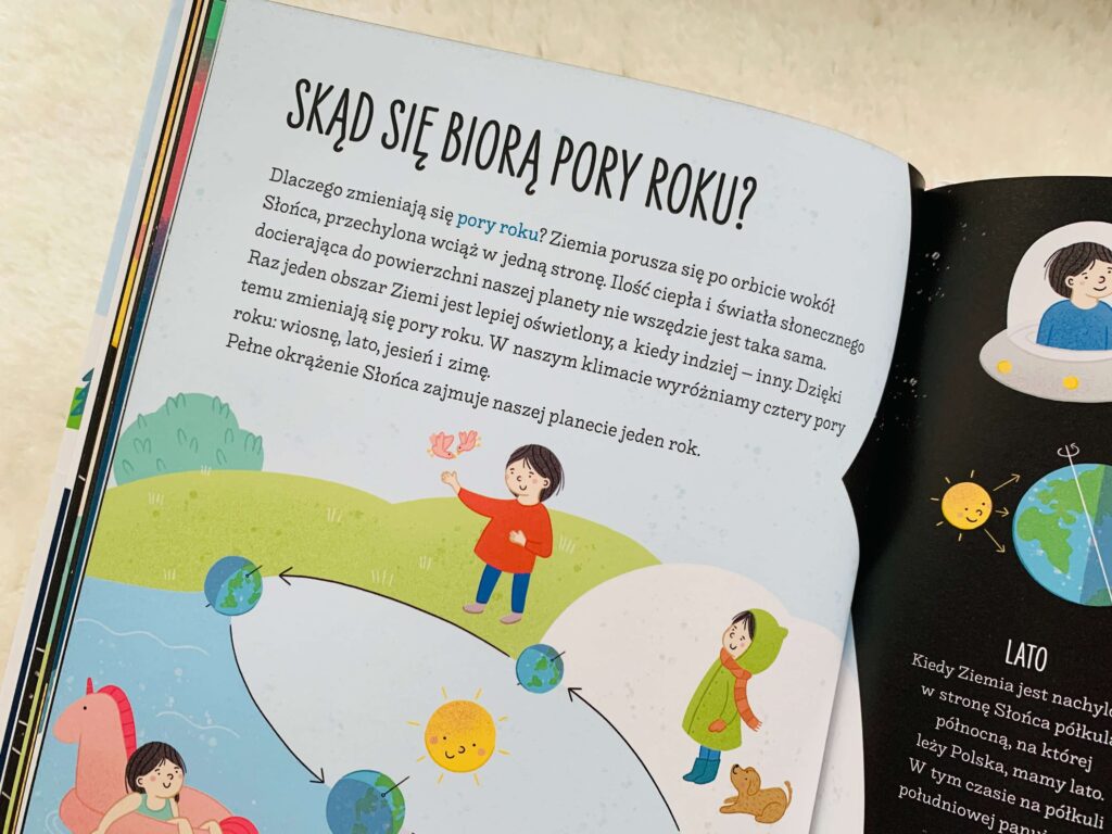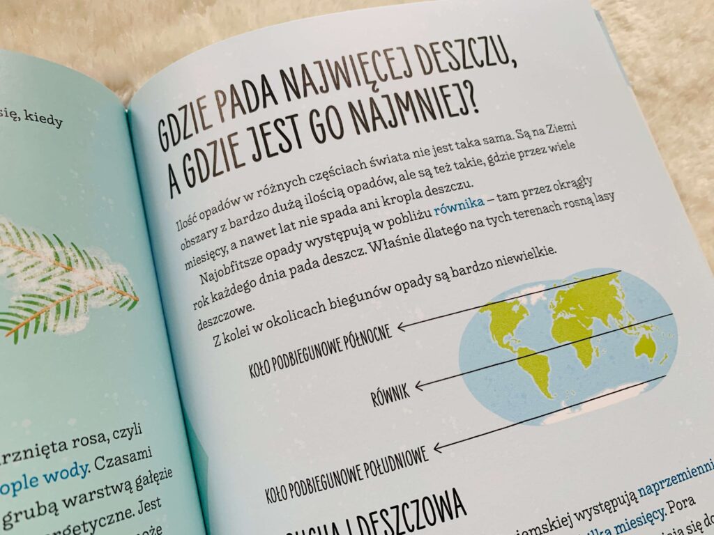 Każda jest wyjątkowa i porusza ważne zagadnienia związane z przyrodą, geografią, fizyką i biologią w prosty, przystępny sposób. A to się mi baaardzo przydaje, bo muszę Ci się przyznać, że jestem kiepska w wyjaśnianiu dzieciom takich zagadnień, zazwyczaj staram się przekazać za dużo szczegółów na raz, skaczę od tematu do tematu, używam zbyt trudnych słów. W konsekwencji dzieci tracą zainteresowanie tematem albo… idą do taty ;) który znacznie lepiej sobie radzi z odpowiadaniem prostymi słowami na trudne pytania.