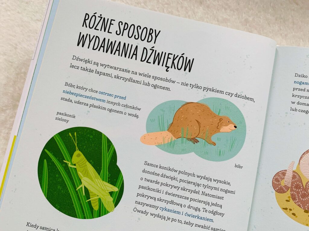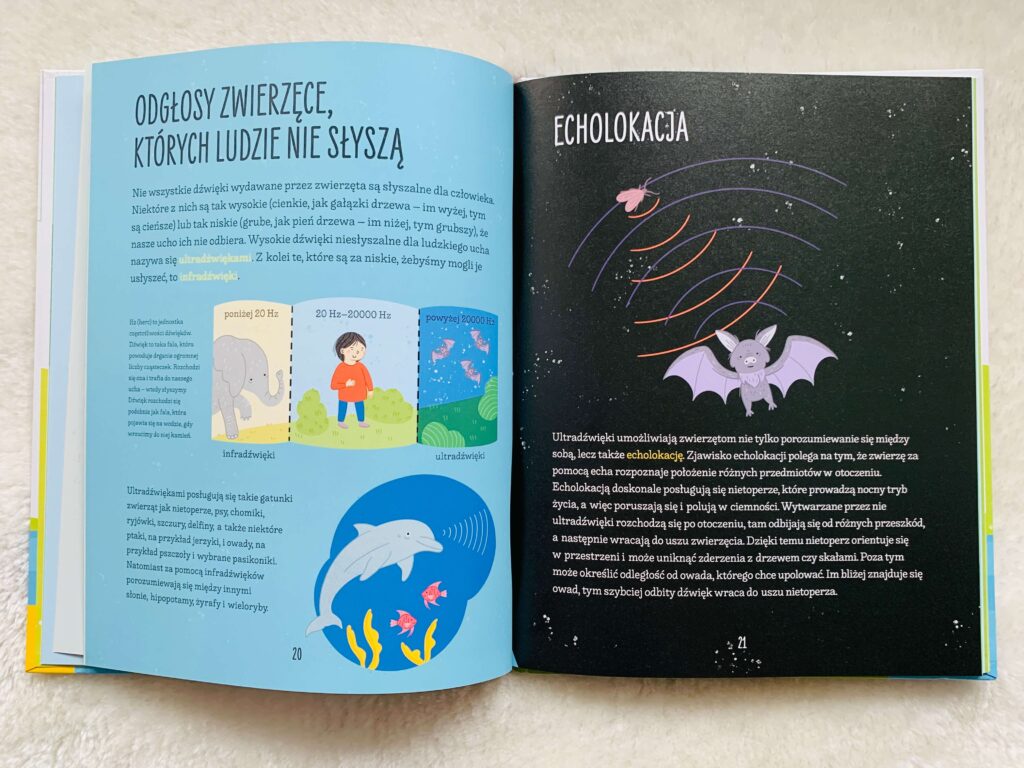 Niesamowita książka o różnych sposobach komunikacji wśród zwierząt – sprawdzimy jak rozmawiają ze sobą koty, psy, pszczoły, nietoperze, świstaki i wilki. Czy wieloryby śpiewają? Czy zapachy pomagają w rozmowie? Jak kot okazuje radość? Czy wszystkie zwierzęta mają uszy? Przyjrzymy się mowie ciała kotów i psów, dowiemy dlaczego króliki tupią, a pszczoły tańczą, rozszyfrujemy ubarwienia os, biedronek, jaszczurek, węży i innych zwierząt. Od tej książki naprawdę trudno się oderwać!