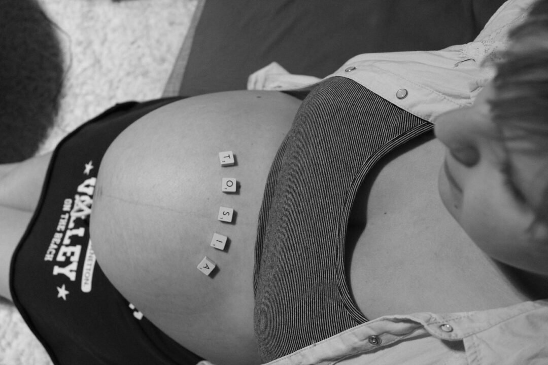 - „brzuszkowa” sesja z partnerem, malowanie brzucha farbkami do ciała;
