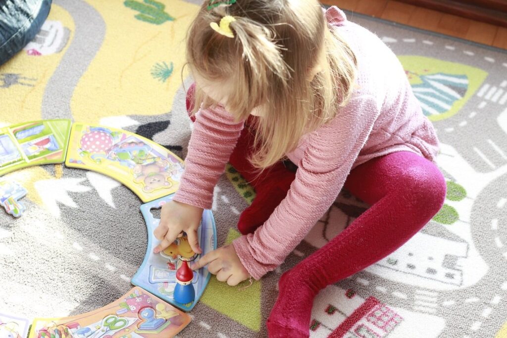 Kolejną istotną sprawą jest poziom trudności. To jest oczywiście sprawa bardzo indywidualna, niektóre dzieciaki załapują w lot zasady gry, inne potrzebują w skupieniu powtórzenia kilka razy reguł, część szybko się zniechęca i nie chce grać w gry, które są dla nich choć trochę za trudne. Nic na siłę. Uważam, że jeśli gra okazuje się dla malucha zbyt skomplikowana, warto odpuścić i dać się mu po prostu nią pobawić, wymyślić własne zasady, niż kurczowo trzymać się instrukcji.