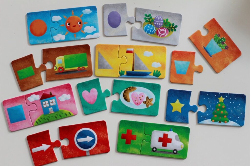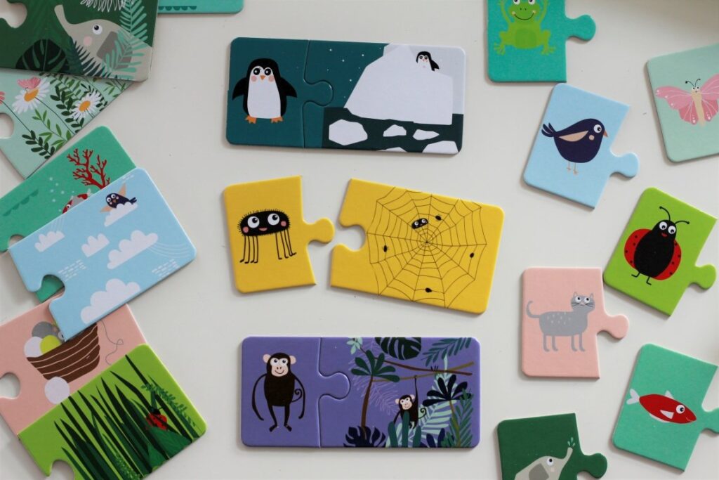 Ostatnio polecałam Wam mnóstwo fantastycznych zabawek dla dzieci do piaskownicy i ogródka, a także klocki i co nieco dla niemowlaków, jeśli przegapiliście, to koniecznie przeczytajcie, jest w czym wybierać. Dziś chciałam Wam zaproponować coś innego – puzzle 2 i 3-elementowe dla najmłodszych oraz podobne zestawy, ale z językiem angielskim również dla nieco starszych dzieci.