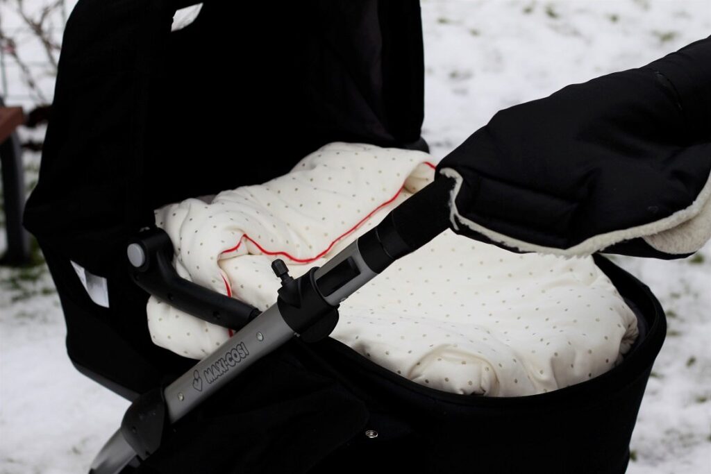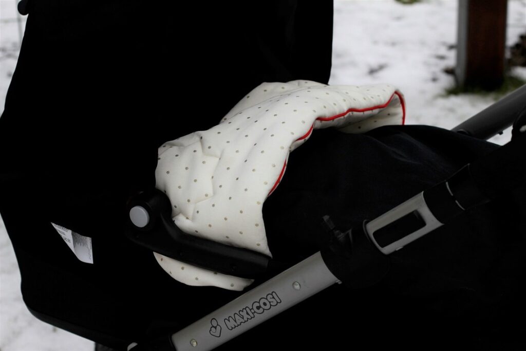 Kompletując wyprawkę dla Helenki musiałam zaopatrzyć się we wszystkie zimowe akcesoria dla niemowlaka, bo Tosia urodziła się latem i nic po niej nie miałam w odpowiednim rozmiarze. Na spacery kupiłam kombinezonik misia i kombinezon zimowy i myślałam, że to wystarczy. Po pierwszych spacerach doszłam jednak do wniosku, że brakuje nam jeszcze kołderki, którą można wywinąć, żeby jeszcze lepiej otulić maluszka w wózku i trochę osłonić od wiatru (moja gondola nie ma takiej opcji).