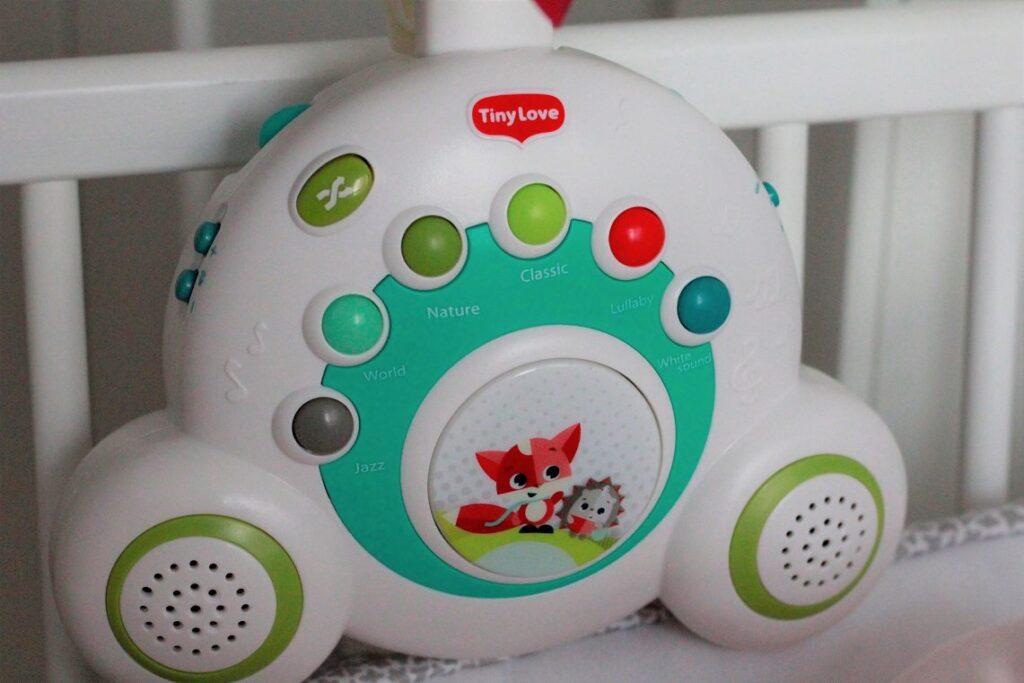 Dzięki Waszym rekomendacjom Mikołaj przyniósł Helence karuzelę do łóżeczka marki Tiny Love. Jestem z niej bardzo zadowolona – karuzelka jest śliczna, melodyjki różnorodne, stonowane i nie za głośne, jakość dźwięku jest świetna. Raz przymocowana do kołyski ani drgnie, zresztą całość jej wykonania jest na wysokim poziomie. Włączamy ją kilkukrotnie w ciągu dnia i jeszcze nie musieliśmy wymieniać baterii (od 24.12), więc wydaje się, że nie jest bardzo „energożerna” ;)