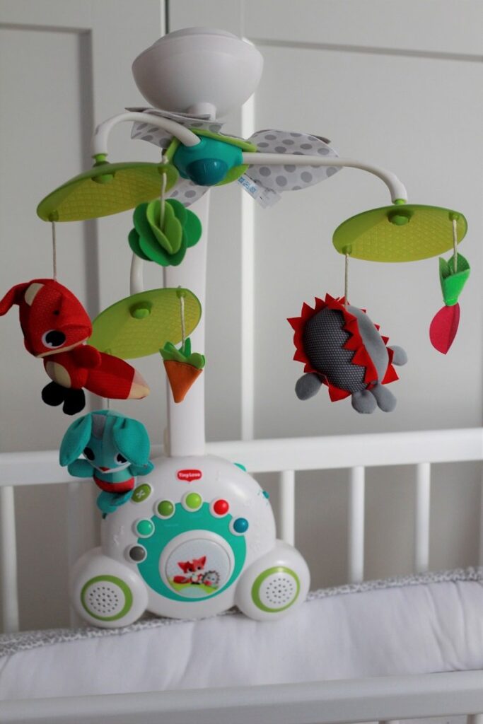 Jedyną rzeczą, którą bym do niej dodała, to możliwość odchylenia pałąka –  byłoby to bardzo pomocne przy wkładaniu i wyjmowaniu dziecka z łóżeczka. Niestety, trzeba się trochę gimnastykować. Fajne jest natomiast to, że gdy dziecko wyrośnie z karuzeli, to ten pałąk można odczepić, a bazy używać jako grającej, przenośnej zabawki. Lubię takie wielofunkcyjne rozwiązania.