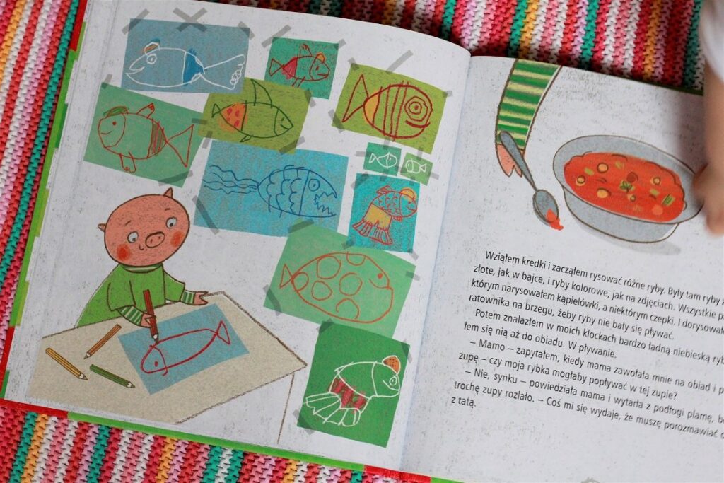 „Wesoły Ryjek i wynalazki” została wydana już jakiś czas temu, jednak dopiero niedawno do nas trafiła. Jak to dobrze się stało! Opowiadania są piękne jak zawsze, a tytułowe wynalazki to nie tylko sprzęty materialne, jak kaloryfery, czy sznurówki, ale też na przykład niewidzialne skrzydła, dzięki którym zawsze się trafi do rodzinnego domu, nawet z bardzo daleka. Wesoły Ryjek bawi się grą edukacyjną, robi zakupy z tatą, ogląda książkę o rybach i dowiaduje się, że najwspanialszym wynalazkiem każdego rodzica jest… jego własne dziecko :)