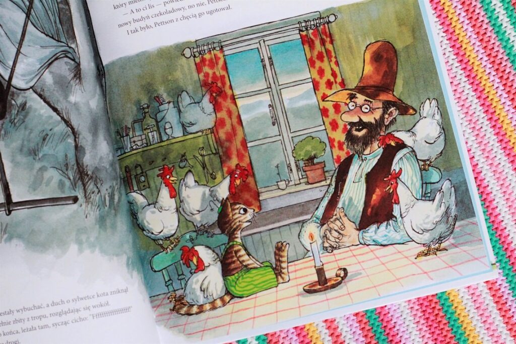 Znacie staruszka Pettsona i jego gadającego kota Findusa? Polecałam Wam dwie książki o nich w zestawieniu najlepszych książek na Boże Narodzenie. Tym razem Pettson i Findus obmyślają pułapkę na grasującego w okolicy lisa. Zwierzak czyni duże szkody okolicznym sąsiadom, zjadając ich kury, jednak Pettson nie zgadza się na jego zastrzelenie. Ma lepszy plan! Chce go wystraszyć tak, żeby przeszła mu ochota na kury raz na zawsze. Przygotowuje sztuczną kurę-pułapkę, wypełnioną pieprzem, a także fajerwerki i nocne straszenie duchami. Nie wszystko jednak idzie zgodnie z planem, a komplikacje sprawiają, że trudno się nie roześmiać ;)