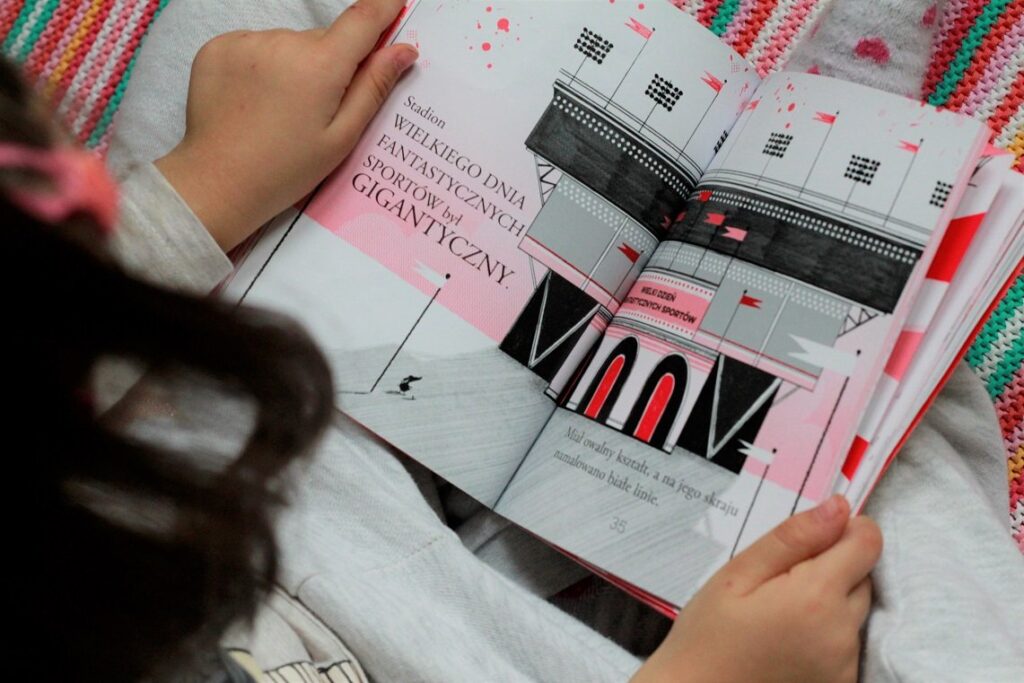 Każda strona zaprojektowana jest w wyjątkowy sposób, mieści niewiele tekstu, pisanego sporą czcionką, więc książka świetnie się nada dla małych początkujących czytelników.