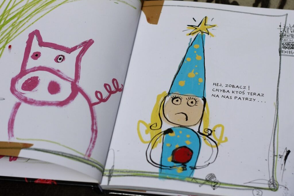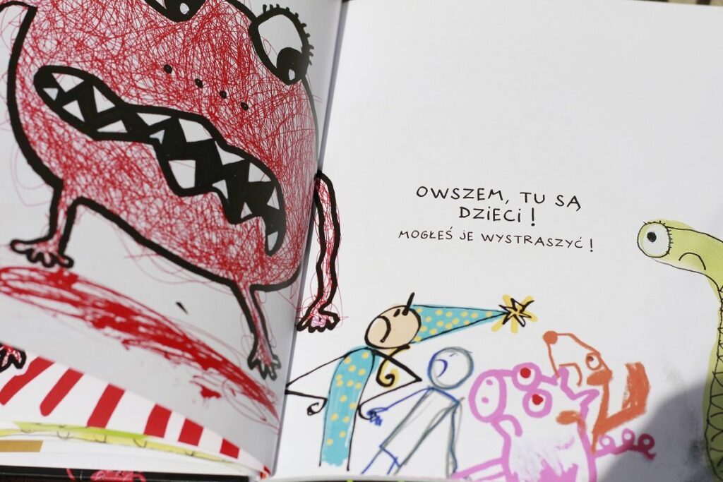 Książka, która najbardziej mnie zaskoczyła, a w zasadzie jej przyjęcie przez Tosię. Czytam ją tak często, że już znam prawie na pamięć. Zaczęłam ją nawet chować, bo już mam dosyć ;) A Tosia, za każdym razem, gdy ją wypatrzy, woła: „Czytamy!”, a potem „Jeszcze raz, jeszcze raz!”. I tak czytam i czytam, po 4-5 razy za każdym posiedzeniem. Sama nie wiem, co sprawia, że jest ona u nas takim hitem. Tullet rewelacyjnie łapie kontakt z dzieckiem, wciągając je w sam środek opowieści o… tworzeniu książki dla dzieci. Napotykamy tam zarówno sympatycznych, choć lekko „niedorysowanych” bohaterów, jak i z założenia straszliwego potworzastego potwora, na koniec odwiedzając pracownię samego Autora. Jest dość prosta, ale pomysłowa i zabawna, może dlatego dzieci ją tak kochają?