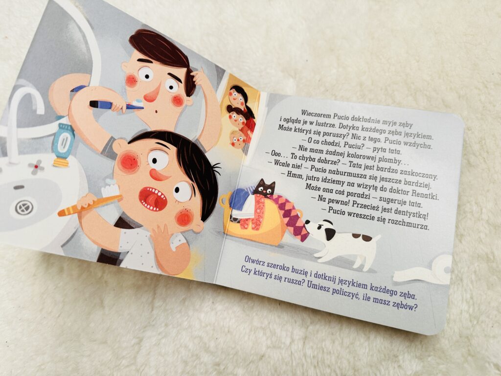 Kto się stęsknił za Puciem i jego wesołą rodzinką? Wszystkim Puciomaniakom bardzo polecam małą książeczkę, w której wszystko kręci się wokół ząbków. Dowiemy się z niej nie tylko jak dbać o zęby, jak prawidłowo je szczotkować, ale też co zrobić, by poradzić sobie z upartym mleczakiem, który nie chce ustąpić miejsca „dorosłemu” ząbkowi :) Dzieci przekonają się, że wizyta u dentysty może być fajną przygodą, poznają wyposażenie gabinetu stomatologicznego, policzą ząbki i wraz z Puciem odkryją prezent od Wróżki Zębuszki. Mega fajna książeczka, w której mimo niewielkiego rozmiaru, kryje się bardzo dużo wartościowych treści. Polecam!