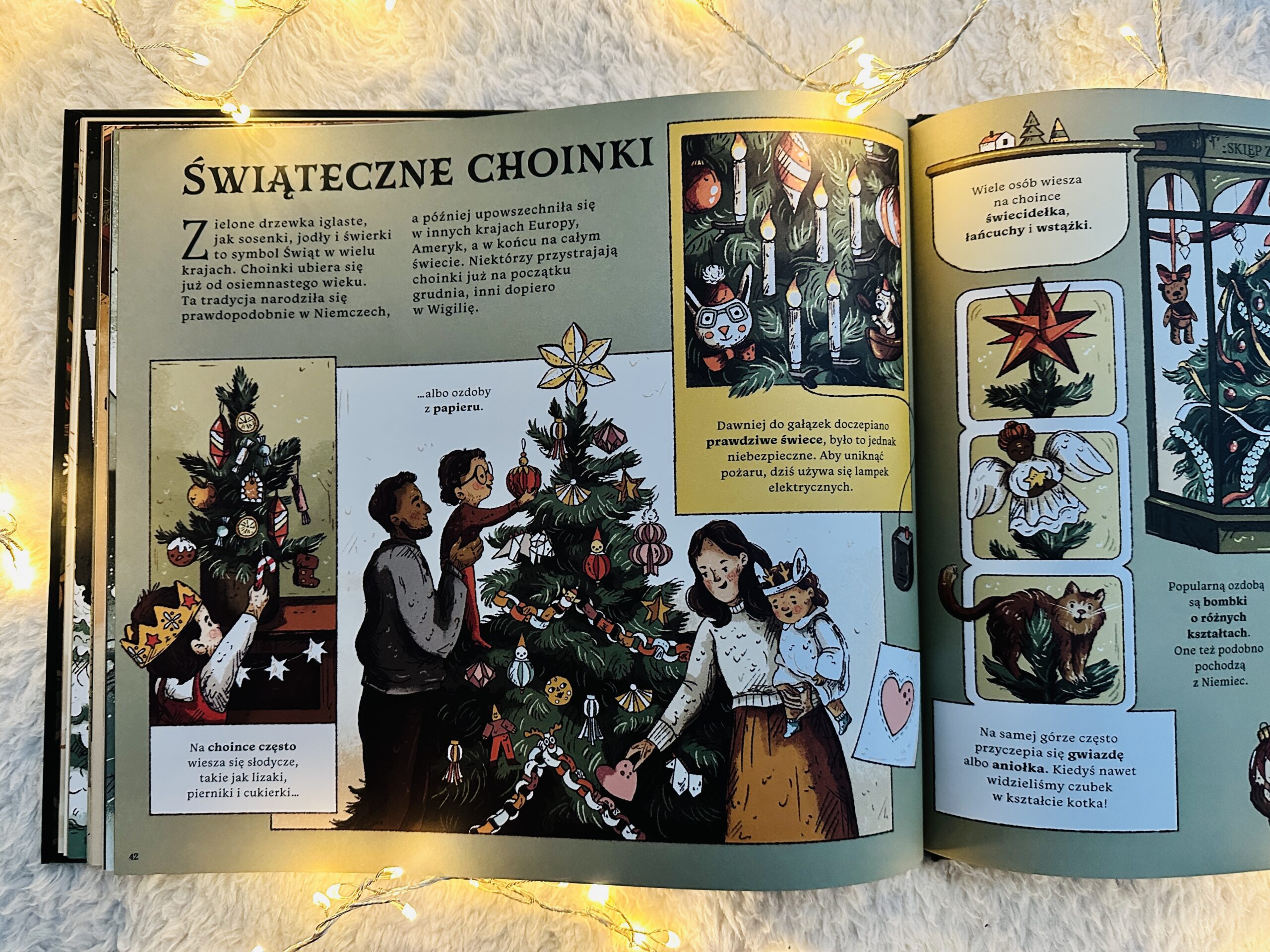 W środku znajdziecie krótkie, wciągające rozdziały, które z humorem i lekkością odpowiadają na pytania, jakie dzieci zadają najczęściej. Każda strona to połączenie świątecznej magii z solidną porcją wiedzy podaną w bardzo przystępny sposób. Ilustracje są kolorowe i pełne szczegółów, dzięki czemu aż chce się je oglądać razem, powoli odkrywając kolejne ciekawostki. Książka rozbudza wyobraźnię, zachęca do rozmów i pozwala poczuć ten wyjątkowy, świąteczny nastrój. Idealna dla ciekawych świata dzieci, które kochają magię, ale równie chętnie dowiadują się, jak działa prawdziwy świat. Świetna na świąteczny prezent :)