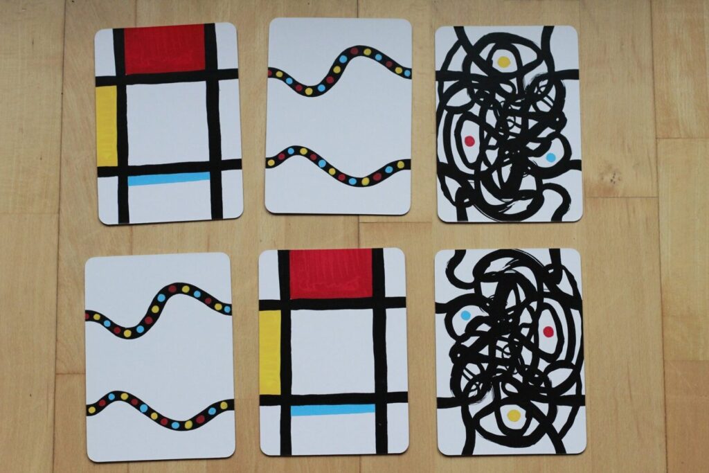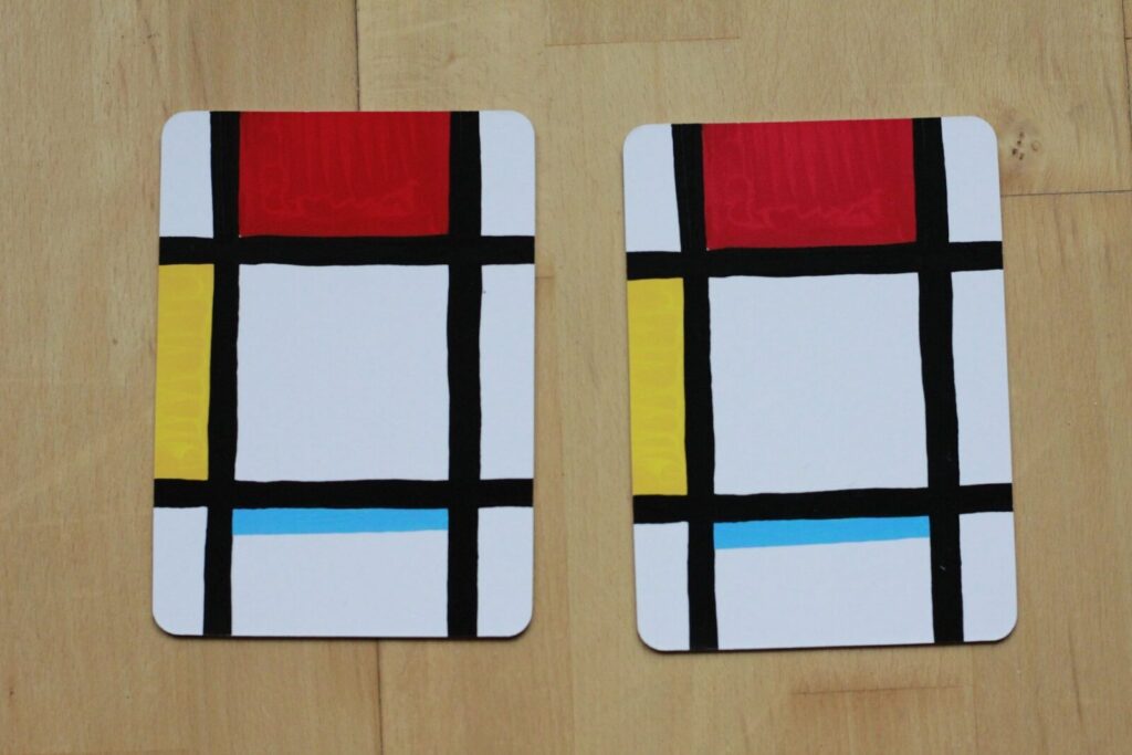 Memo Labirynty sprawdzają się świetnie. To 44 duże, dwustronne kartonowe karty, dzięki którym można grać w memory oraz budować labirynty. I to nie byle jakie labirynty! Mamy do wyboru dwie wersje kolorystyczne – albo klasyczne czarno-białe, albo moje ulubione kolorowe, przywodzące na myśl kultowe dzieła Mondriana (KLIK).