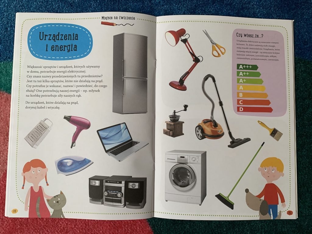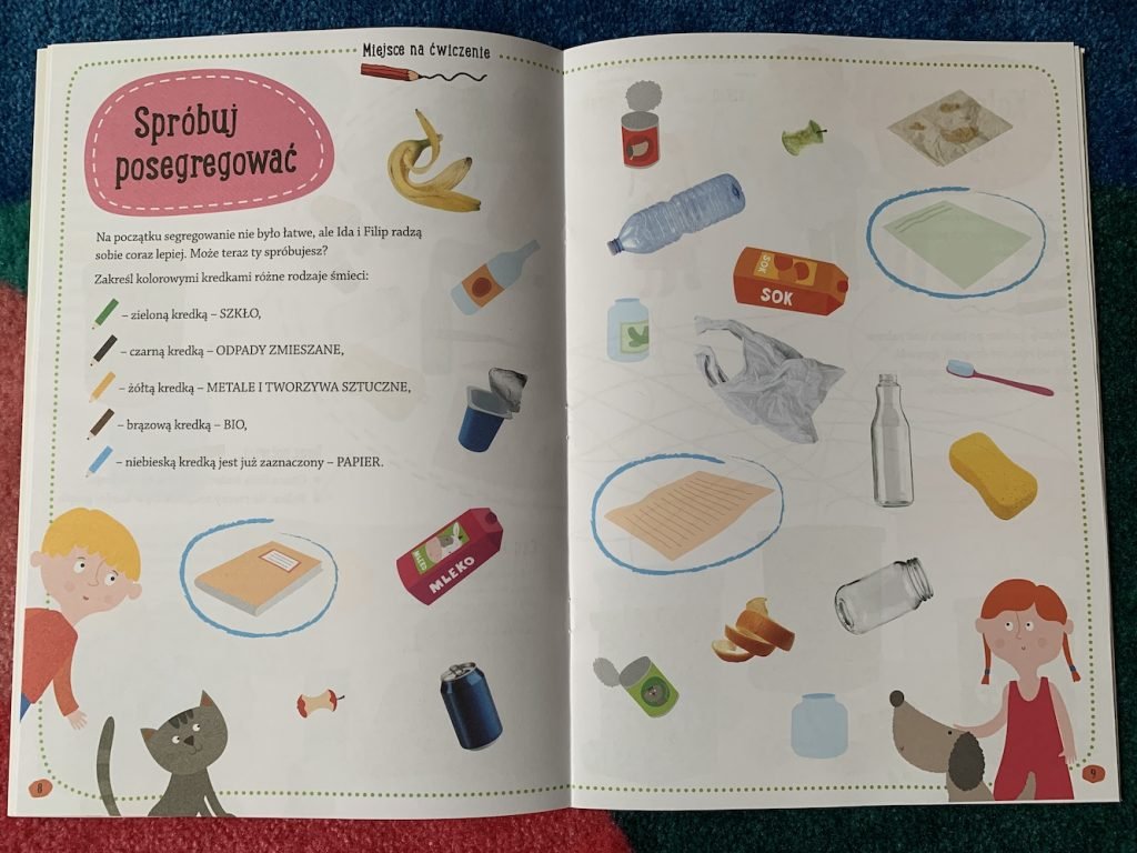 Nie są to typowe zeszyty aktywnościowe, ale w każdej książce znajdziemy kilka zadań dla dzieci, które uporządkowują i utrwalają zdobytą wiedzę.