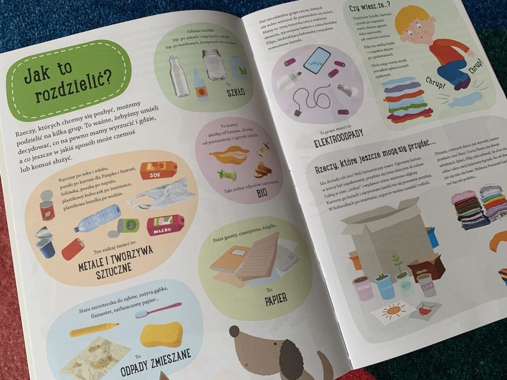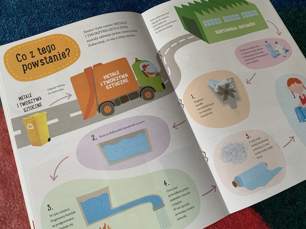 Rewelacyjna książka o śmieciach, prawdziwe kompendium wiedzy dla nieco starszych dzieci. Czy śmieci mogą trafić do galerii sztuki? Jak wyglądają współczesne wysypiska? Co się robi z toksycznymi odpadami? Czym są wyspy śmieci na oceanie? Moją pełną recenzję tej książki znajdziesz TUTAJ (5. książka z kolei). Bardzo polecam!