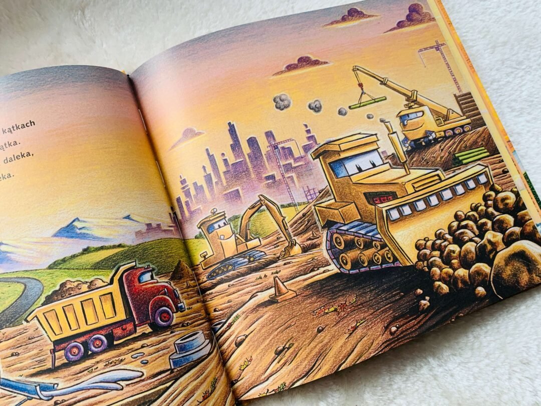 Ależ my lubimy tę serię! Pięknie zilustrowane, rymowane opowieści o różnych pojazdach z placu budowy są u nas hitem od dawna. Helenka bardzo lubi słuchać o przygodach koparki, dźwigu, wywrotki, spychacza i betoniarki oraz ich przyjaciół na dobranoc. Książki mają fajny, spokojny klimat, są bardzo pozytywne i niosą dobre przesłanie.