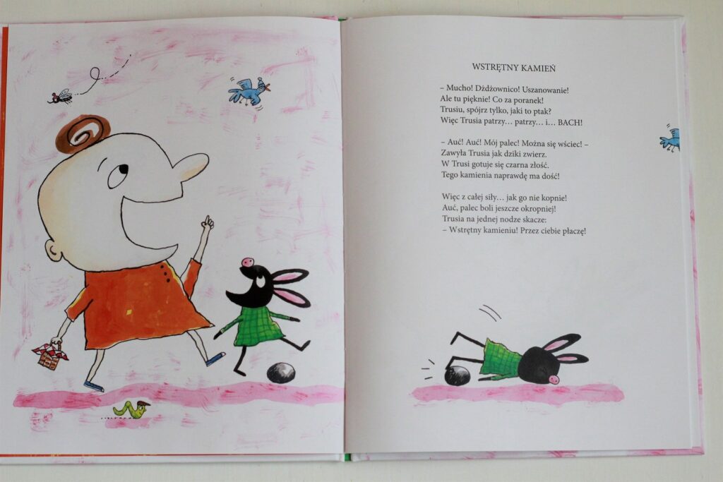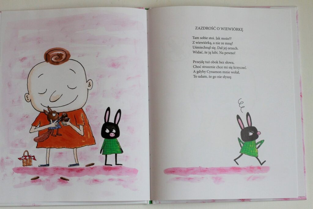 Jeśli nie znacie jeszcze Cynamona i Trusi, koniecznie trzeba to zmienić! „Wierszyki o złości i radości” to już druga książka z tej serii, którą mamy i kochamy. W zabawnych wierszykach przedstawiona jest cała gama uczuć – od złości po radość, od zazdrości po tęsknotę i wiele, wiele więcej. Najlepsze jest to, że wierszyki układają się w spójną całość, a historia tak wciąga, że trudno się od niej oderwać. Tekst jest napisany prostym, zrozumiałym językiem, a rymy są niebanalne. Naprawdę, perełka.