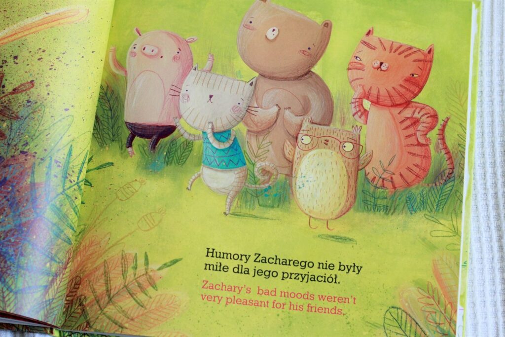Emocje są ważne, trzeba je nazywać, akceptować, nie tłumić – to już wiemy. Ale jak nasze emocje i zachowanie wpływają na innych? Jak sobie radzić z tymi „negatywnymi”? O tym właśnie jest ta prosta i dynamiczna historia. Mały zajączek Zachary bardzo często się złości, mnóstwo rzeczy go denerwuje i wyprowadza z równowagi, co nie jest przyjemne dla jego przyjaciół. Ci postanawiają mu pomóc – bez skutku próbują różnych rzeczy, aż w końcu znajdują rozwiązanie…