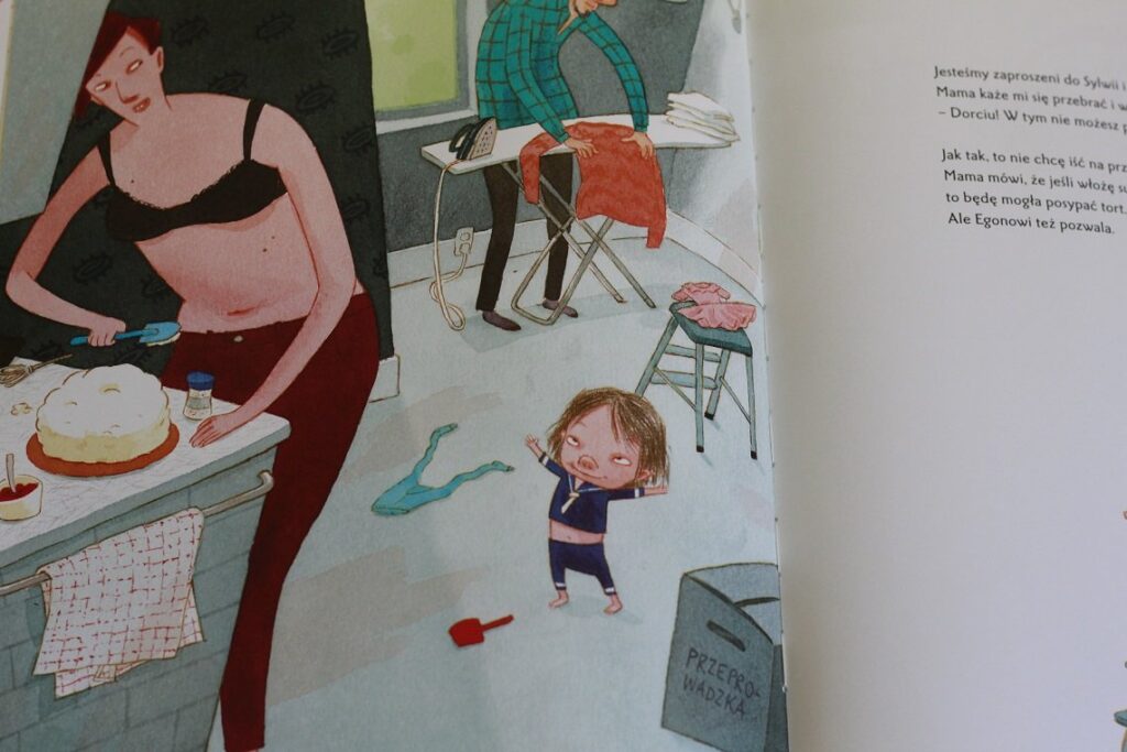 Dla mnie to wszystko jest PLUSEM książki. Staram się wychowywać otwarte, tolerancyjne dziecko, które nie będzie zszokowane innymi sposobami na życie niż tradycyjnym. Jedyne, co mi się nie spodobało to pomysł zostawienia obrażonego dziecka samego w samochodzie, to bardzo niebezpieczne i czytając dziecku Tosi zawsze dodaję w tym miejscu stosowny komentarz.
