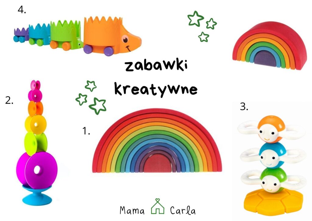 1. Tęcza Grimm’s klasyczna (TUTAJ) – rewelacyjna zabawka, dla której każde dziecko znajdzie dziesiątki zastosowań. Można układać wieżę, tory przeszkód, różne konstrukcje przestrzenne, bujać lalki i pluszaki, budować garaż, tunel, most i wiele, wiele więcej! To zabawka z rodzaju „daj dziecku i zobacz co się stanie”, no i zrób sobie kawkę, przygotuj dobrą książkę ;)