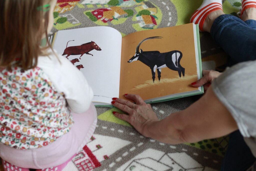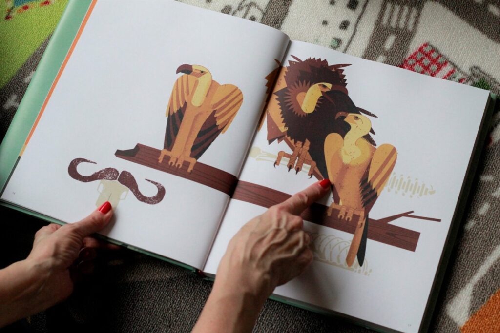 Zanim się jednak spostrzegłam, już obie siedziały na dywanie i przeglądały „Galerię dzikich zwierząt. Południe”. Tosi bardzo spodobały się grafiki zwierząt i ciągle dopytywała o różne zwierzęta, a babcia kartkowała album, opowiadała o lwach, mandrylach, nosorożcach, słoniach i pancernikach. To coś w czym babcie są najlepsze, prawda? Cierpliwość i spokój x 100.