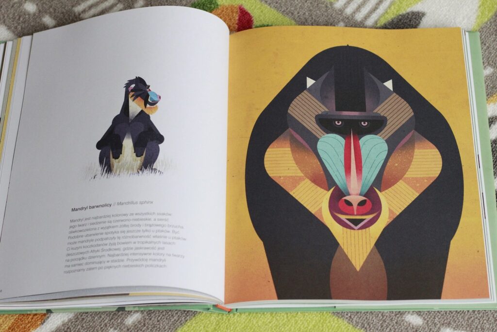 Bardzo podobają mi się grafiki w albumie – są dokładnie takie jak lubię – nowoczesne, ale jednocześnie nieprzesadzone – nadal można rozpoznać w nich prawdziwe zwierzęta. Sama kolekcja nazywa się „ART”, to w końcu do czegoś zobowiązuje, prawda? :) Nasz album przedstawia dzikie zwierzęta, które żyją na półkuli południowej, zarówno ssaki, jak i ptaki, czy gady. W przyszłości na pewno nabędziemy również drugi album z serii – ze zwierzętami z półkuli północnej, może na urodziny?