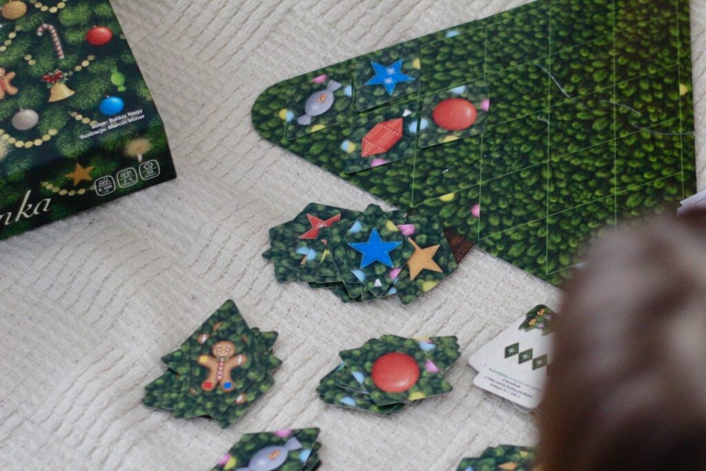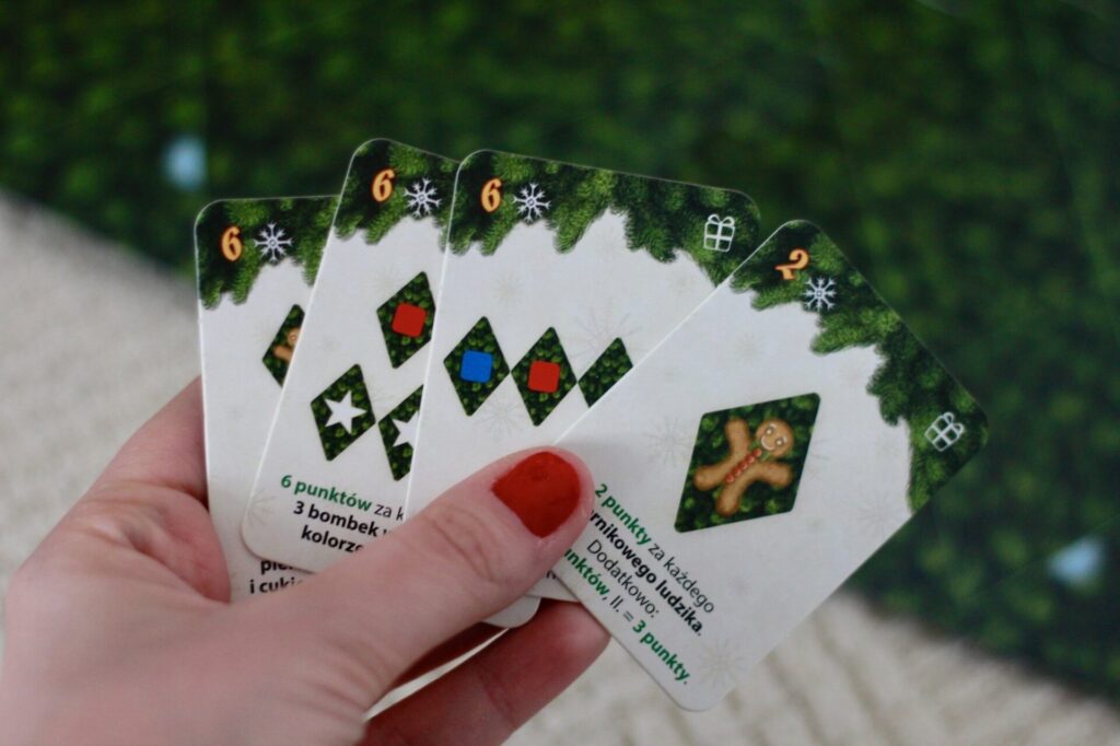 Fajna, klimatyczna gra dla całej rodziny, choć trzeba trochę pokombinować, żeby wygrać! Celem gry jest przystrojenie świątecznego drzewka w taki sposób, by zdobyć jak najwięcej punktów. Mamy do dyspozycji różne rodzaje bombek, cukierki i piernikowe ludziki w przeróżnych wariantach.