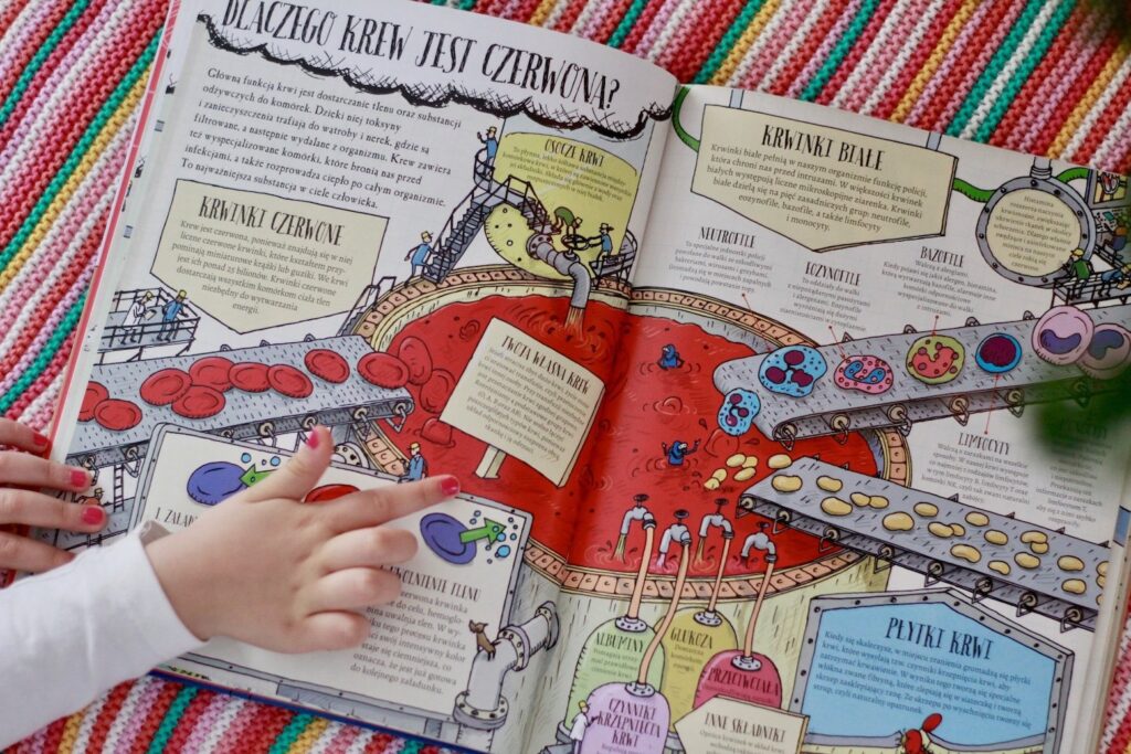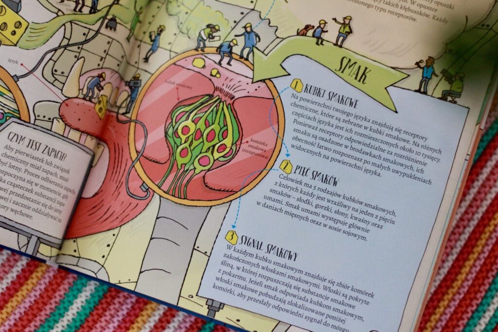 Myślę, że będzie super pomocna dla uczniów, choć i Tosia jest nią bardzo zainteresowana. Wszystko jest tu wyjaśnione prostym językiem i w przystępny sposób, dzięki czemu zachęca do zgłębiania wiedzy o narządach, zmysłach, ludzkim ciele i procesach w nim zachodzących. Przyznam, że i ja się dowiaduję z tej książki wielu rzeczy i odkurzam swoją wiedzę ze szkoły.