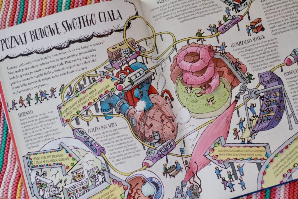 Rewelacyjna książka o ludzkim ciele. Pełna praktycznej wiedzy, ciekawostek, wesołych rysunków i rozkładanych strony (no bo jak takie jelita by się zmieściły na dwóch stronach? no nie da rady, dlatego zajmują aż cztery!).