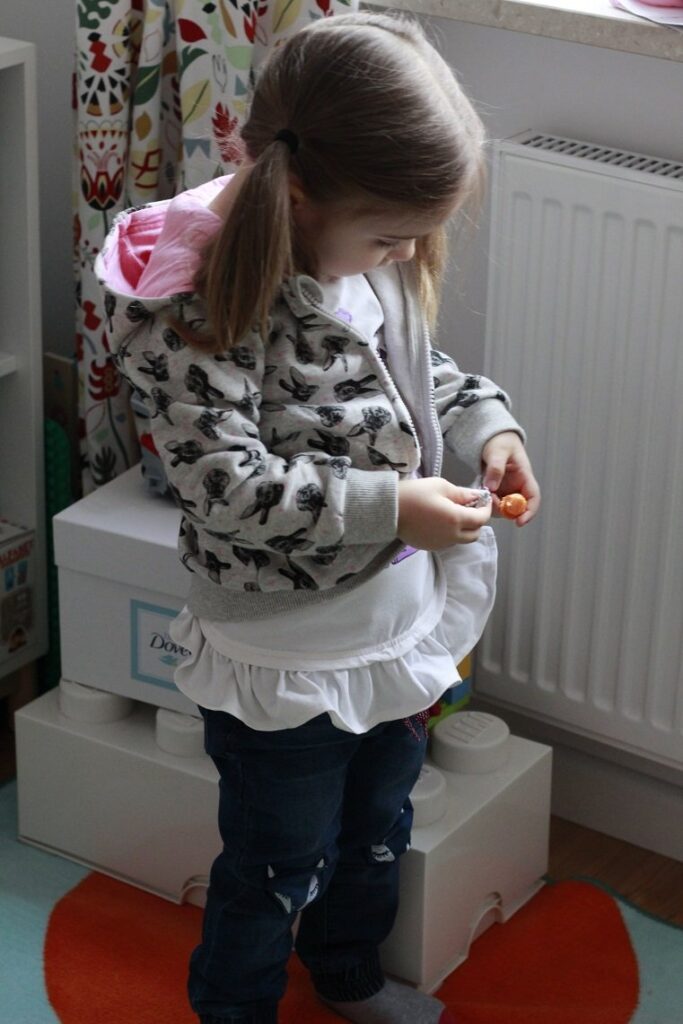 Moje dziecko od pierwszej chwili tak pokochało bluzę w króliki, że pewnej nocy uparło się, że będzie w niej spać, koniec kropka. Cóż mogłam zrobić? Wyłączyłam grzejnik i pocałowałam na dobranoc. Szczerze Wam powiem, że to najlepsza bluza w szafie Tosi – jest urocza, a zarazem wygodna i dobrze skrojona.